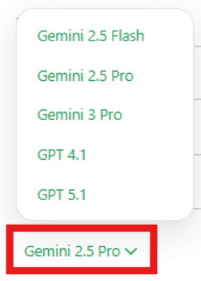 Step 5: At the bottom-left of the configuration window, the user has the option to select the AI model that they want Nova to reference.